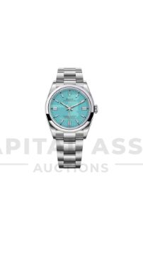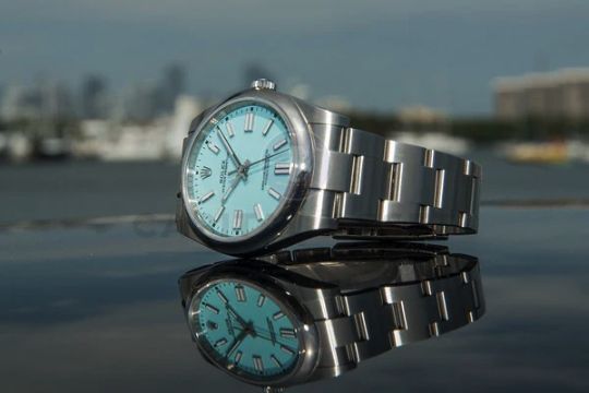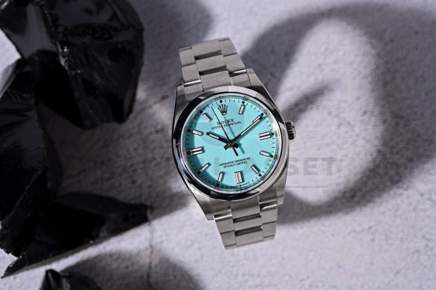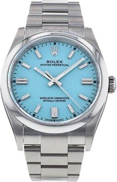 The Oyster Perpetual 36 with a turquoise blue dial and an Oysterbracelet.